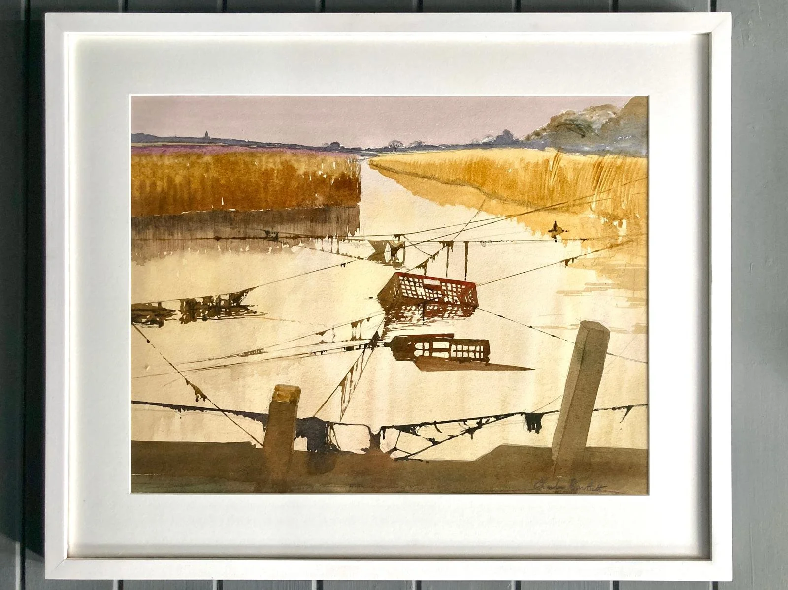 Above: Charles Bartlett RWS RE (1921-2014) East Anglian Backwater, 1960s. Watercolour on paper. H:62 X W:75cms