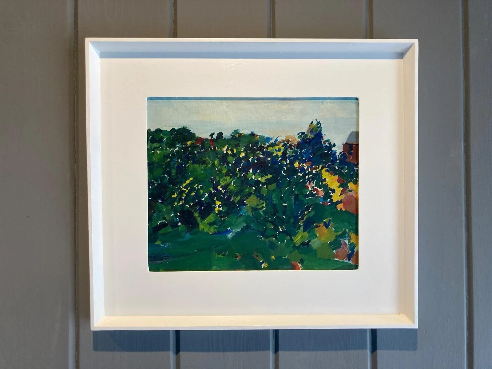 His work rapidly evolved during this time in Suffolk, moving from dark blocky landscapes to a looser technique and brighter palette. This powerful image belies its scale and it was exhibited in Australia in 1963.